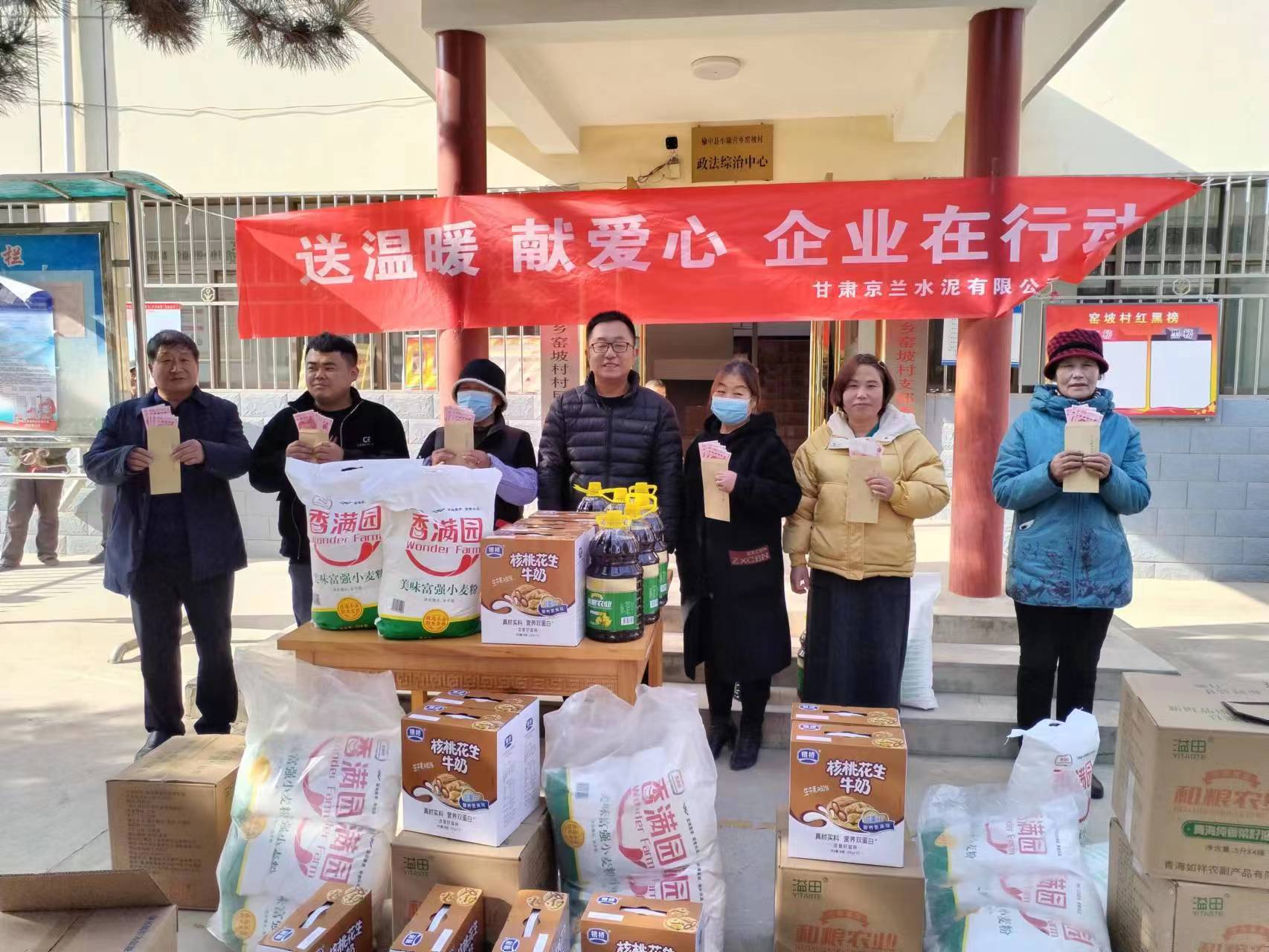 歲寒情更濃,牽掛暖人心。在春節(jié)來(lái)臨之際,甘肅京蘭水泥有限公司黨支部在企業(yè)所在地小康營(yíng)鄉(xiāng)、新營(yíng)鎮(zhèn)、高崖鎮(zhèn)開展了“送溫暖,獻(xiàn)愛心,企業(yè)在行動(dòng)”村企聯(lián)建活動(dòng),主要對(duì)涉企鄉(xiāng)鎮(zhèn)的老年人、困難家庭及罹患重病人員進(jìn)行了慰問(wèn)。此次活動(dòng)累計(jì)慰問(wèn)困難群眾122人(戶),發(fā)放面粉(10kg)122袋、食用油(5kg)122桶、純牛奶122箱、重病人員500元現(xiàn)金/人。